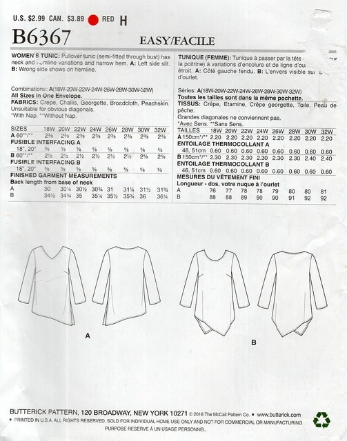 Butterick See Sew Sewing Pattern Easy Misses Tunic Size 18w 32w B6367 For Sale Online Ebay